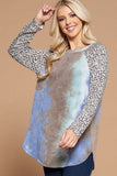 Elevate your style with our "Plus Size French Terry Tie Dye Casual Color Block Top" in Blue/Grey. Add it to your cart now and experience the perfect blend of fashion and comfort!
