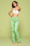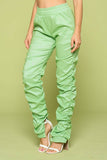Add our Leather Pu Ruched Pants in Kiwi to your cart now and experience the perfect blend of fashion and comfort!